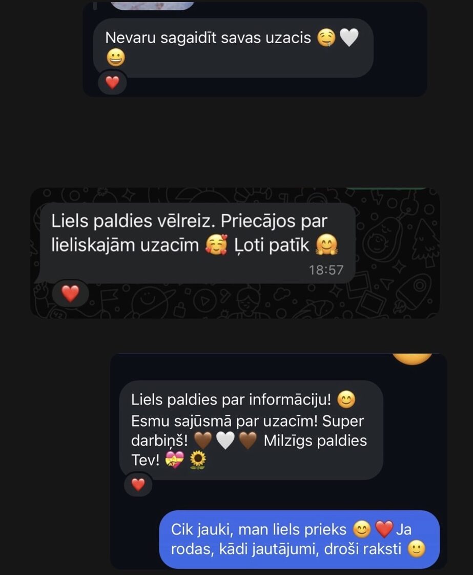 - Pēc tam seko neliela konsultācija par Tavām vēlmēm un es no savas puses dodu atgriezenisko saiti ar savu skatījumu;